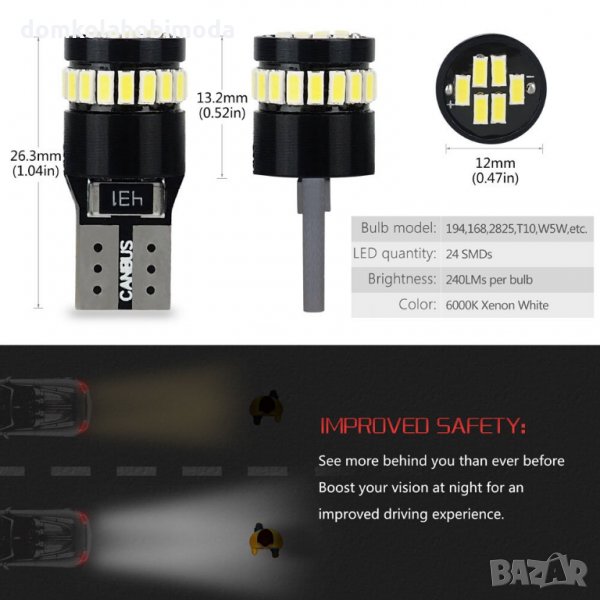 Тази мощнa LED крушка е вградена в Canbus Error всяка крушка има 24 броя чипове с високо качество 3014LED.