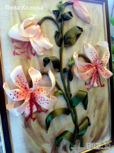 Обемна картина-ръчна бродерия с копринена лента.Размера на картината е 30/20см.