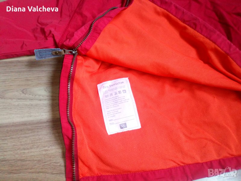 Якето е в много добро състояние, с цип отстрани за лесно обличане, качулка с пристягане, за ръст 110 см по етикет, но става за ръст до около 120 см. Подходящо за пролет и есен.
