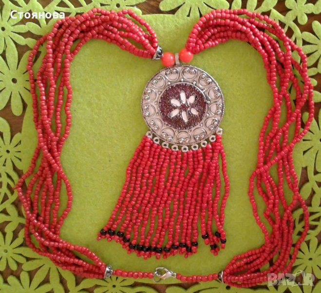 Ефектно дамско червено колие → Обява 27671446