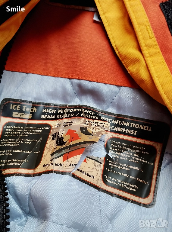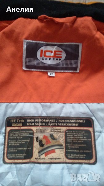 Ice Peak ® ски / сноуборд яке, високо качество на материалите и изработката. Якето е с Recco ® - система за защита при лавини, дишаща и водоустойчива материя, горен слой - здрав и плътен полиестер. Вътрешната част задържа топлината, отвежда потта. Отлично състояние - няма скъсано, протрито, всички ципове работят и т.н. Големият етикет с означенията е гумиран и се е напукал, но спокойно може да се премахне без последствия. Около едното копче най-горе към шията има леко оцветяване (снимано е). Множество джобчета - за телефон, за лифт карта, за очила и т.н.. Размер 42. Размери измерени от мен: ширина от подмишниците - 58 см., дължина - 70 см., дължина ръкав от подмишницата - 55 см., дължина на ръкав + рамо - 78 см. Изпращам с "Еконт" с 10% отстъпка от цената за доставка. може и със "Спиди".