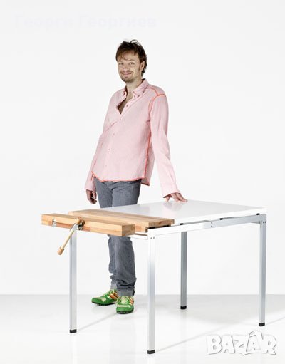 За кабинети по трудово обучение и количества над 20 бр. - специални цени.Универсална маса с дърводелски тезгях от бук и вградена отварачка за бира.