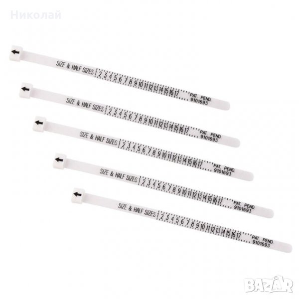 Линия за измерване размера на пръстени . Измерва от 1 номер до 19 номер има и разграфения за половинки . Линията е за многократна употреба . Навийте линиято около пръстаи след това прокарайте края през ухото и пристегнете , така ще сте сигурни , че размерът е точен и няма да се премести .