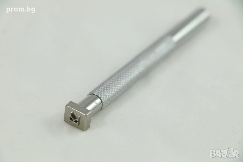 Височина на символа 6 мм, размери на металната плочка 1 см х 7мм, дължина на държача 9 см.