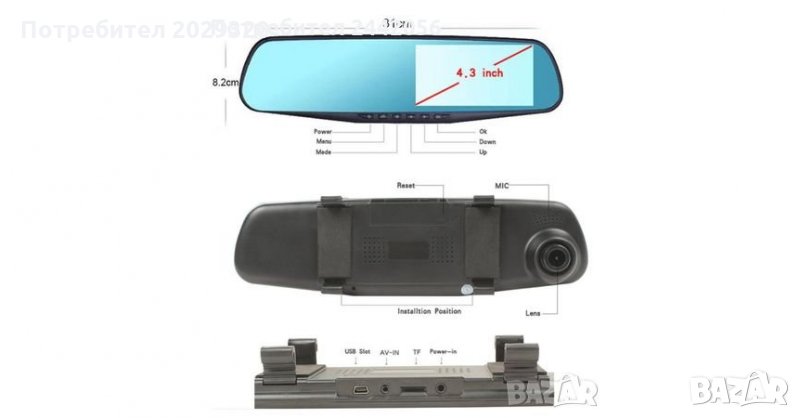 Видерегистратор вграден в огледалото и камера за задно виждане(паркиране)