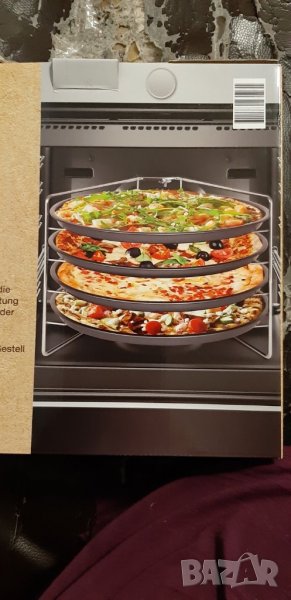 Комплект, състоящ се от 4 тави за пица и 1 рамка