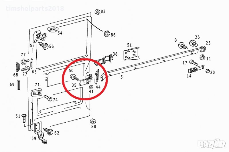 Обтегач за плъзгаща врата среден с панта за MERCEDES SPRINTER 1995.1-2006.7 Пасажерска старана