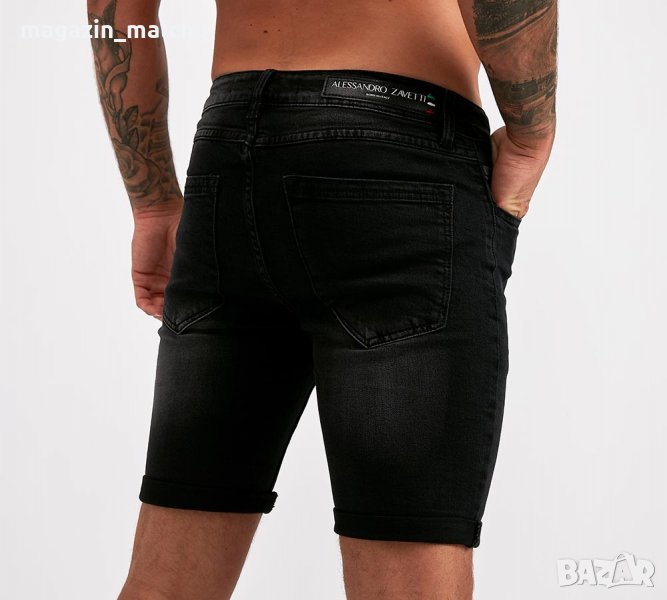 Тези къси дънки от Alessandro Zavetti с черен деним и модерно излъчване, което ги прави идеални за ежедневно носене, а закопчаването с копчета осигурява сигурна форма. Петте джоба ви позволяват да носите вещите си с лекота. Наслади се на ежедневието с мъжки къси дънки Alessandro Zavetti. Изработени от мек, еластичен деним ще те накарат да се чувстваш приятно и комфортно. Със сигурност ще бъдеш забелязан с този панталон с модерен дизайн. Безспорно късите дънки на Alessandro Zavetti са необходимо допълнение към всеки мъжки гардероб.