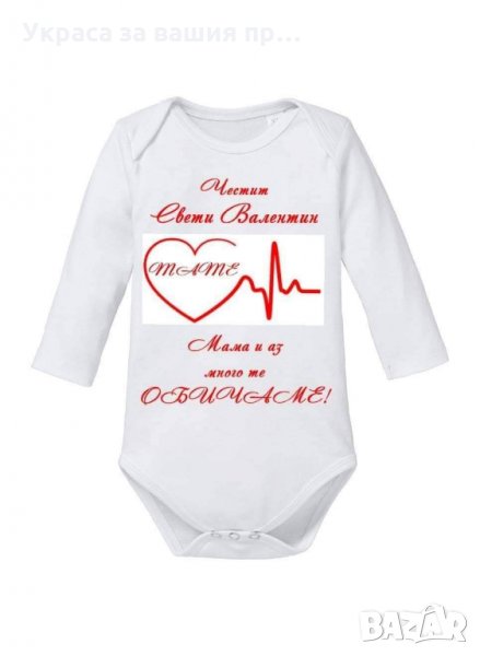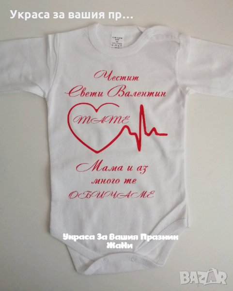 Бебешко боди ВАЛЕНТИНКА С Текст по поръчка , снимка 1 - Романтични подаръци - 27730909 Бебешко боди ВАЛЕНТИНКА С Текст по поръчка , снимка 2 - Романтични подаръци - 27730909 Бебешко боди ВАЛЕНТИНКА С Текст по поръчка , снимка 3 - Романтични подаръци - 27730909 Бебешко боди ВАЛЕНТИНКА С Текст по поръчка , снимка 4 - Романтични подаръци - 27730909 1/4