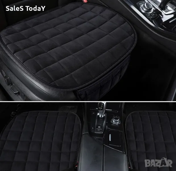 Черен универсален предпазен плюшен калъф подложка протектор за седалка на автомобил от противоплъзгащa текстилна материя 50 х 50 cm