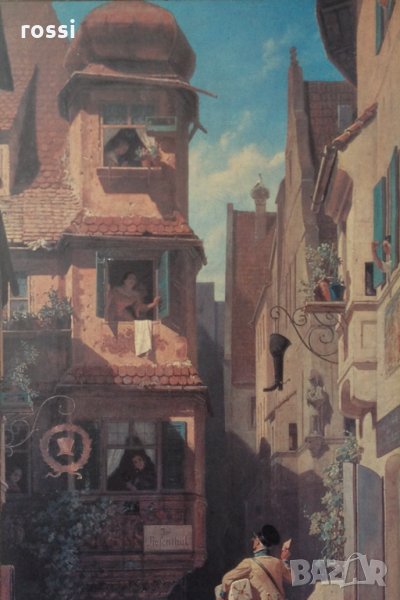 Carl Spitzweg "Der Briefbote im Rosenthal"(1858)/Пощальонът. Картина. Репродукция/Германия → Обява 27739121