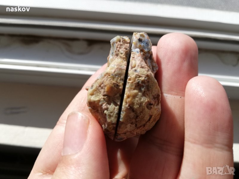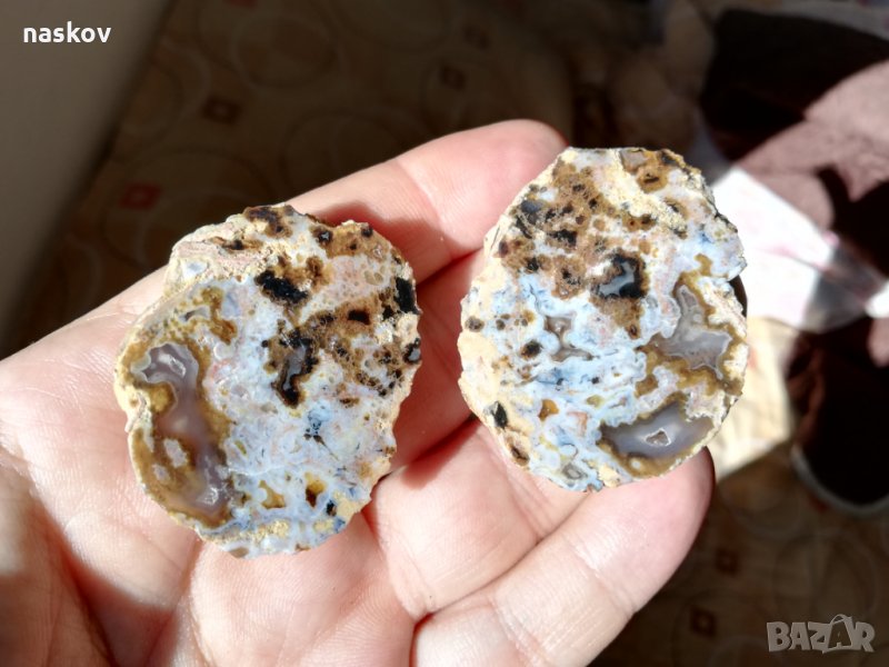 Ахат (две половини) (Родопи, България) (Снимки 6, 7, 8) - размери: 50 x 45 x 28 mm, тегло: 52,8 g. Цена 30 лв.
