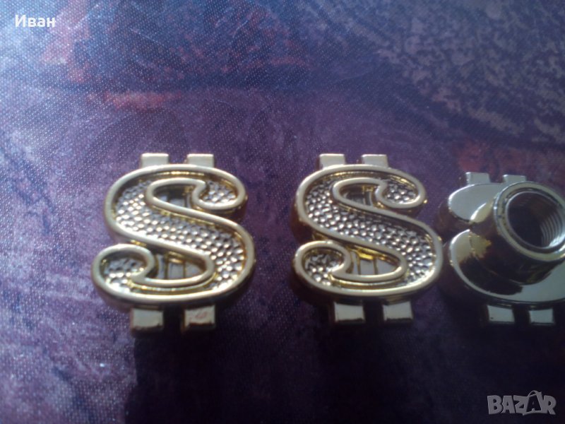 Капачки за вентили винтили златни долари за кола автомобил колело велосипед мотор мотопед , снимка 1 - Аксесоари и консумативи - 27741596 Капачки за вентили винтили златни долари за кола автомобил колело велосипед мотор мотопед , снимка 2 - Аксесоари и консумативи - 27741596 Капачки за вентили винтили златни долари за кола автомобил колело велосипед мотор мотопед , снимка 3 - Аксесоари и консумативи - 27741596 Капачки за вентили винтили златни долари за кола автомобил колело велосипед мотор мотопед , снимка 4 - Аксесоари и консумативи - 27741596 Капачки за вентили винтили златни долари за кола автомобил колело велосипед мотор мотопед , снимка 5 - Аксесоари и консумативи - 27741596 1/5