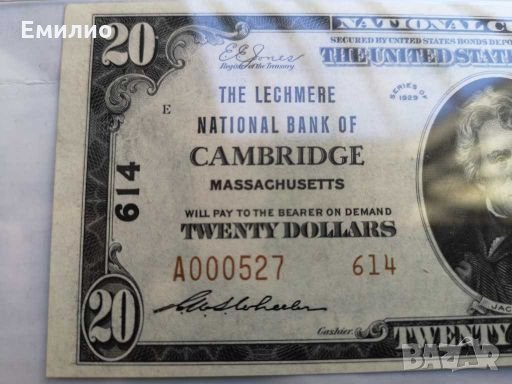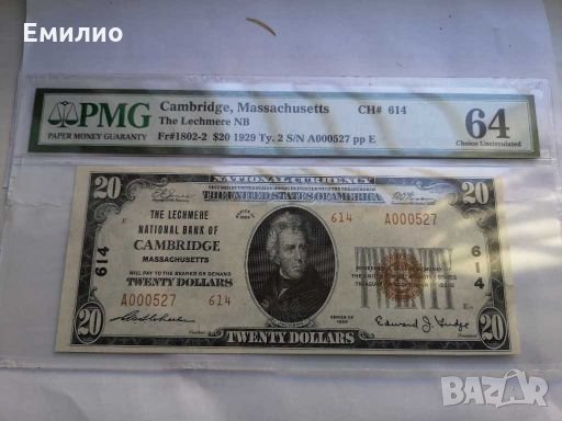 RARE $ 20 DOLLARS 1929 Type 2 The LECHMERE CAMBRIDGE PMG64 CHARTER 614