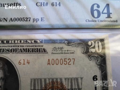 С Кафяв Печат и Супер Сериен номер 527. $ 20 Долара 1929 год.