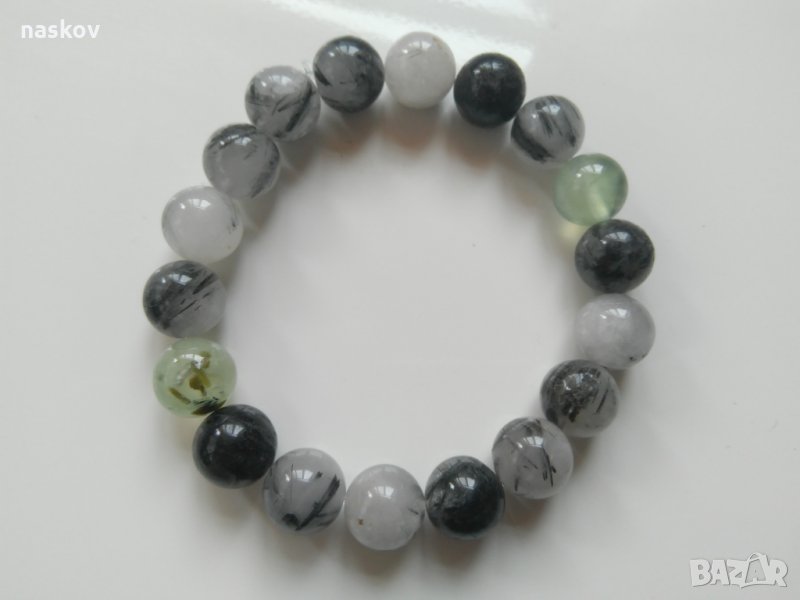 Гривна от турмалинов кварц и пренит (Снимка 6) - има 16 топчета турмалинов кварц и 2 топчета пренит с диаметър 12 мм, обща дължина 21,6 см. Цена: 30 лв;