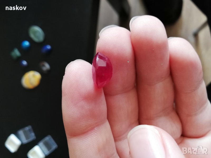 Рубин (Снимки: 4, 5, 6, 7) - Размери: 13,7 х 11,5 х 7,3 мм, Тегло: 11 карата (2,2 грама). Цена - 240 лв;
