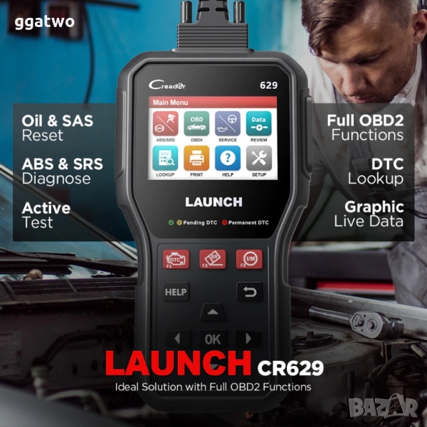 Лаунч CR629 ви позволява освен да четете и триете грешки в двигател, АБС и еърбег системите и да се възползвате от 3 от най-необходимите резет функции (внимание - тези функции не работят за всички модели от изброените марки. за повече информация се свържете с нас или потърсете информация за вашия модел на сайта на производителя):