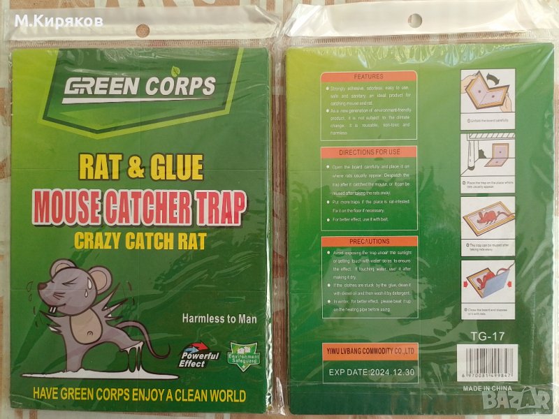 Капан с незасъхващо лепило за мишки и плъхове .Лесен за употреба. Голям Размер: 21 х 16 см. в сгънато положение.Надеждно решение в борбата срещу досадните вредители и гризачи. Капанът представлява картон със силно залепващо лепило - без мирис, който е готов за употреба веднага. Това е продукт от нова генерация, безопасен е и е хигиеничен, тъй като е създаден с грижа за околната среда. Използвайте капана при необходимост. Лепилото привлича гризачите, тъй като съдържа фъстъчено масло за примамка, но ако желаете още по-бърз ефект - може да добавите и някаква храна.Напълно безопасен за хора и домашни любимци.Изключително подходящ за всякакъв вид помещения като ресторанти, хранителни магазини, заведения,складове и други.