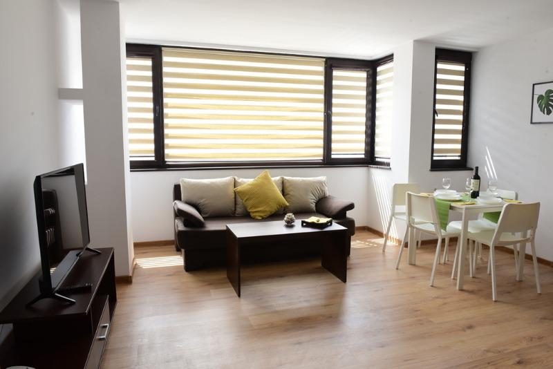 В наемната цена са включени: ежеседмично почистване, ежеседмична смяна на спално бельо и кърпи, телевизия + високоскоростен интернет, ток и вода.