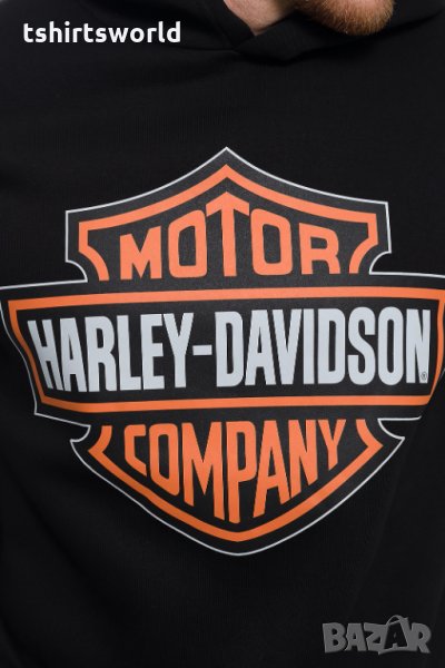 Страхотен нов мъжки суичър в черен цвят с качулка, две джобчета и трансферен печат HARLEY DAVIDSON,