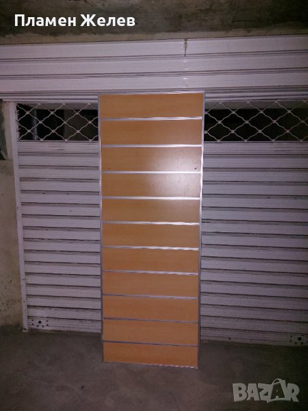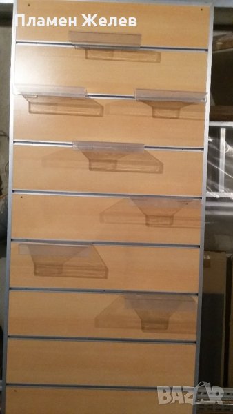 Продавам търговско оборудване за магазин тип ,, Канални пано " с монтирани външни алуминиеви лайсни. Оборудването се продава със стойки за обувки, които не са включени в цената, като цената на един брой стойка е 1.50€ .Размерите на паното са 0.75/2.00 м Оборудването е подходящо както за обувки, така и за дрехи.