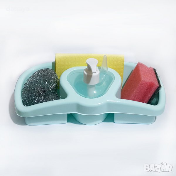 Поставка органайзер за домакински гъби с дозатор за веро или течен сапун. Практичен кухненски органайзер, с който гъбичките за чинии ще са ви винаги под ръка и на правилното място. Удобен