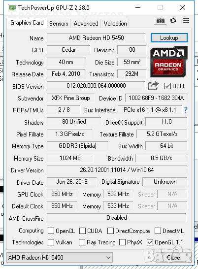 Продавам видео карта: XFX HD5450 1GB DDR3 64bit (HD-545X-ZKH) VGA DVI DP LP PCI-E → Обява 27761436