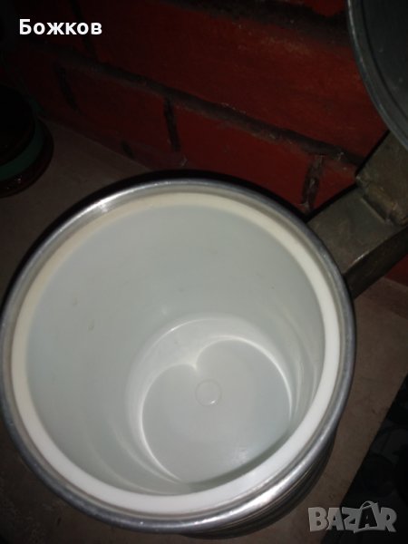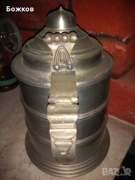 Голяма халба за лед. Цинкова с подвижен капак и масивна дръжка с орнаменти. Маркировка!