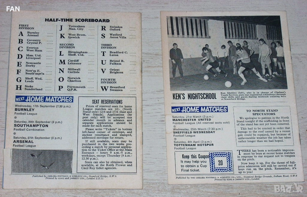 Оригинални стари футболни програми на Челси от 1969, 1970, 1971, 1974