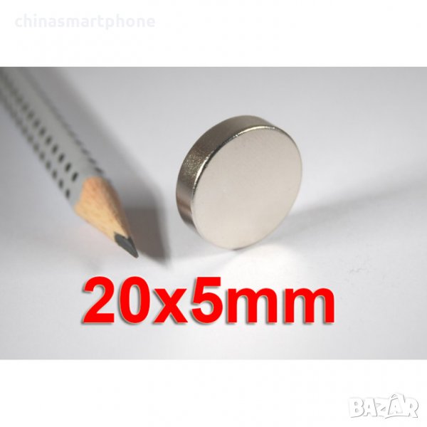 5 € - 20x5mm, N52, сила 2300 Gs -2800 Gs
