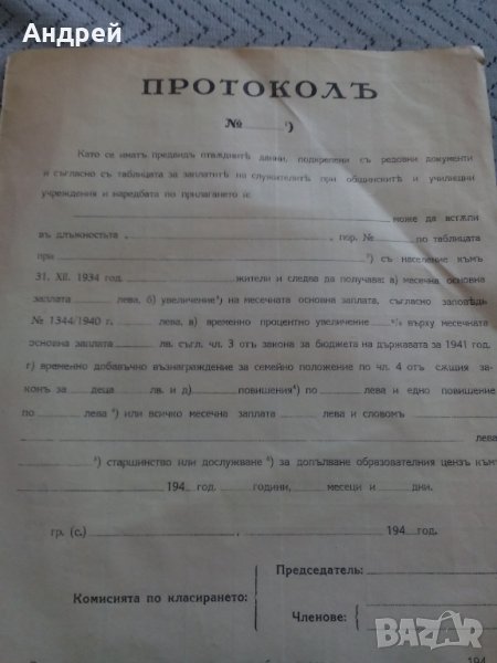 Бланка Протокол от 40-те!