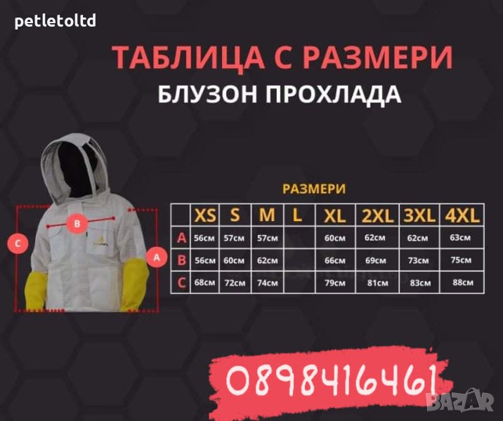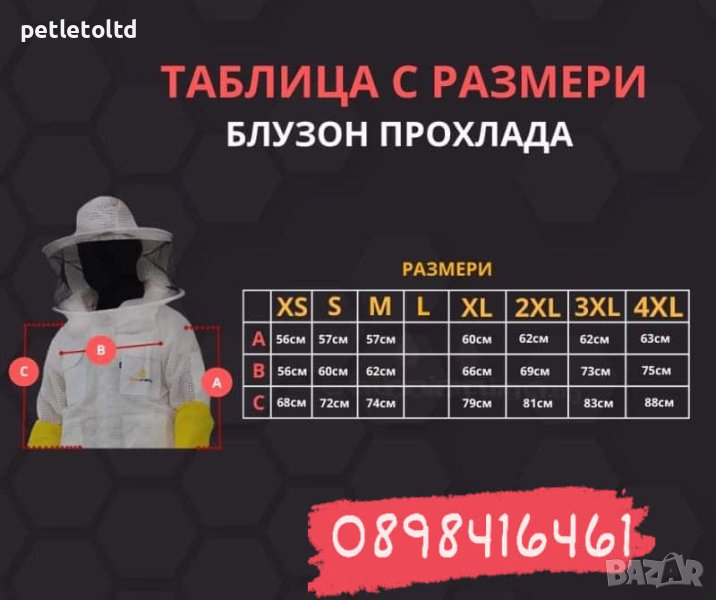 Блузона е изработен от трипластова мрежа (дишаща материя), осигурява защита от ужилване и добра вентилация в горещите летни дни. Допълнителни джобове на ръкавите пригодени за ръчни инструменти.