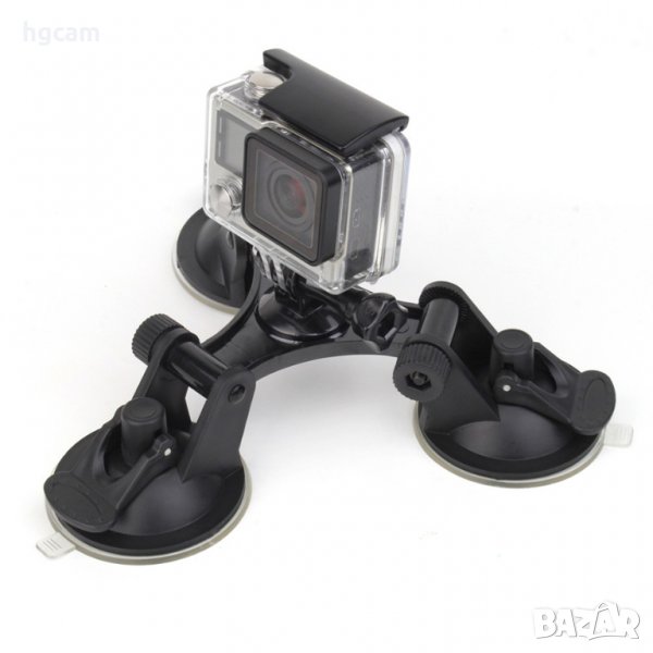 Suction Cup Mount Go Pro тройна вакуум стойка размер М за монтаж на кола( капак, калници, прозорци, врати, багажник), мотор, ATV, сноуборд, кайт, сърф и много други.