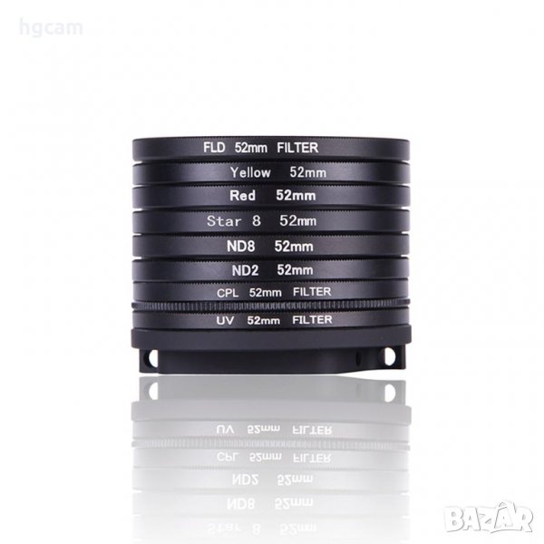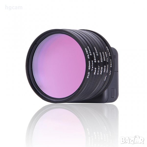 Комплект филтри 52mm 10 в 1 за GoPro HERO5/HERO6/HERO7 BLACK/New(2018) - CPL + UV + ND2 + ND8 + Star 8 + Red + Yellow + FLD / Purple + Адаптер + Капаче