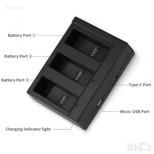 Висококачествено зарядно устройство за зареждане на до 3 батерии за екшън камера GoPro Hero 5/6/7 Black/New(2018).