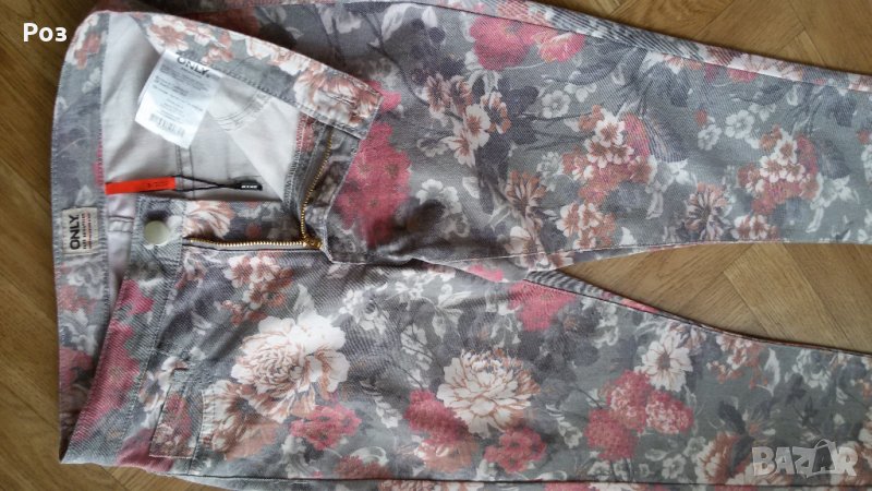 Чисто нови маркови панталончета - слим, на цветя. Много свежи и весели... По -тъмния, с по-ситните цветчета, е обуван само веднъж. Малки са ми - отговарят на номер