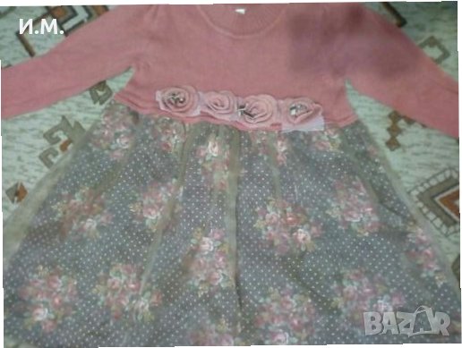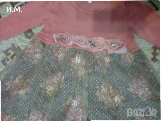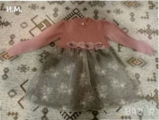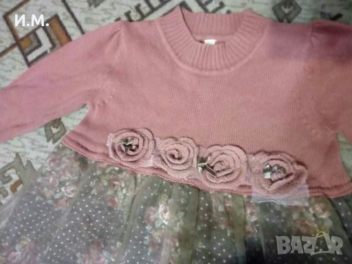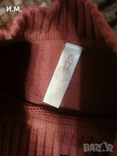 В отлично състояние, един път ползвана. Горната част е плетена и много ефектна. Удобна. Дължина 70см, ръкав 50см, мишниците с от 38см и достигат до 60см, имат голяма разтегливост.