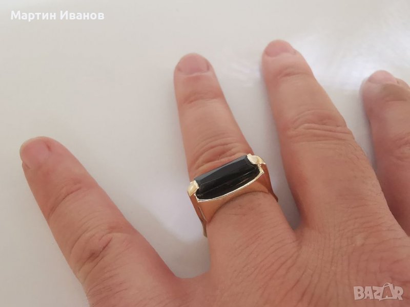 Златен пръстен с оникс → Обява 27796320