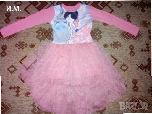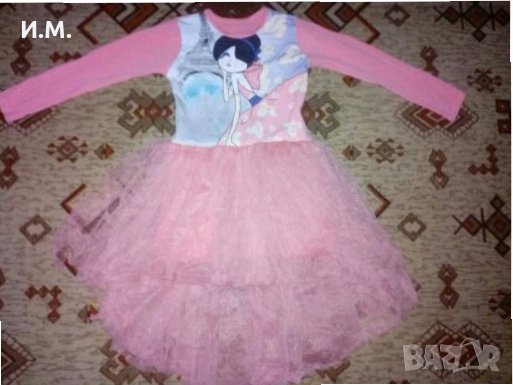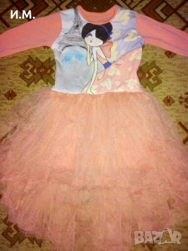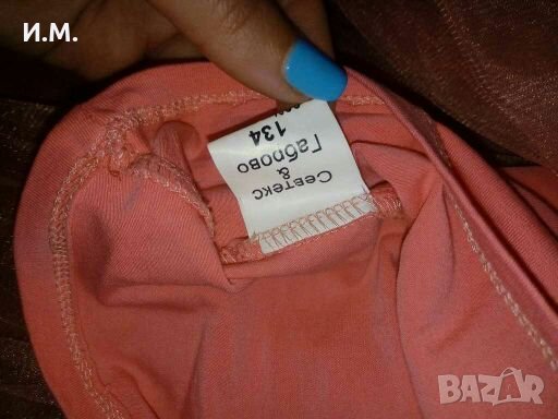 В отлично състояние. Дължина отпред 66см, отзад 85 см-прилича на принцеса в нея. Ръкав 43см. Мишниците са силно разтегливи, става и за слабо, и за пълничко дете. Цвят корал/диня.