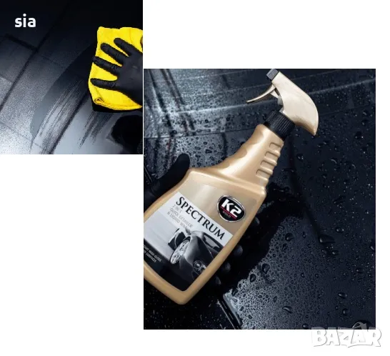 K2 SPECTRUM е уникална, синтетична течна вакса (Quick Detailer), чиято цел е бързо лъскане на автомобилната боя. Перфектен е за ситуации, когато искате да придадете блясък и освежите външния вид на целия автомобил за кратко време. Осигурява незабавен и впечатляващ ефект.