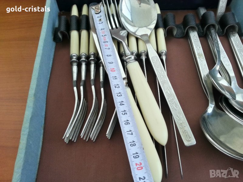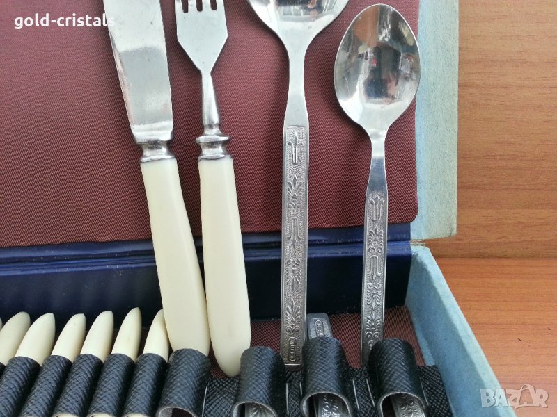 Антикварен сервиз Руски прибори за хранене Съветски ссср неизползвани в кутия маркирани неръждаеми ножове вилици лъжици лъжички комплект сет лот ретро арт декор винтидж стари колекция стари антикварни предмети обзавеждане за дома и семейството подходящи за подарък за ценители и колекционери