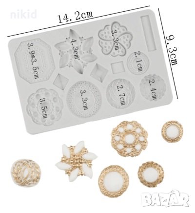 Различни камъни диаманти цветя брошка голям силиконов молд за фондан украса торта декорация шоколад → Обява 27815566