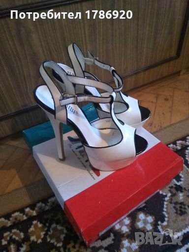 Екстравагантни дамски сандали, носени са само веднъж, ток 16см, платформа 4,5см