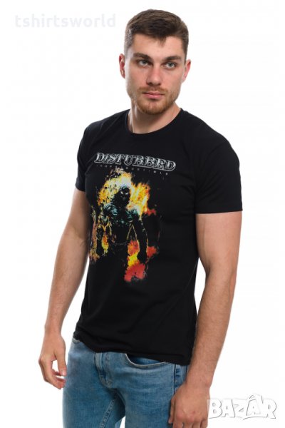 Страхотна нова мъжка тениска в черен цвят с дигитален печат на музикалната група DISTURBED. Тениската е изработена в България под марката PRINTEX от висококачествен 100% пениран памук на 170 гр./м², който запазва цялостта на материята и наситеността на цветовете на черното трико дълго време. С удобна кройка, тениската е свободна и позволява максимален комфорт при носене. Професионално изработен висококачествен дигитален печат, устойчив на пране с години. Тениската може да се пере при температура до 40 градуса. Спокойно можем да гарантираме за качеството на изработката и ярките цветове на дизайна.