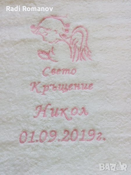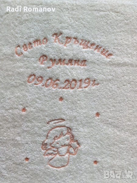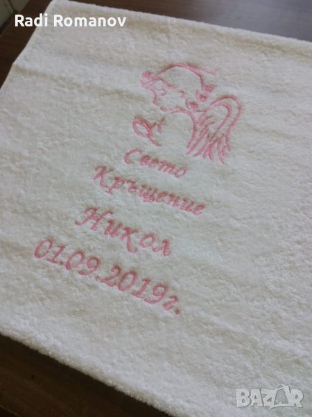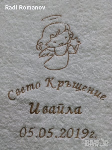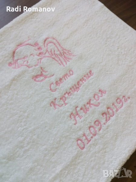 Хавлия за кръщене, бродерия, бяла хавлия, персонализация, → Обява 27820495