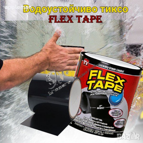 Flex Tape е супер силна, гумирана, водоустойчива лента, която може да залепва, свързва, запечатва и ремонтира почти всичко. Спира незабавно течове.
