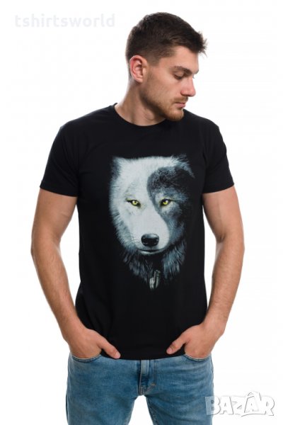 Нова мъжка тениска с дигитален печат Вълк ИН и ЯН, Серия вълци
