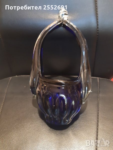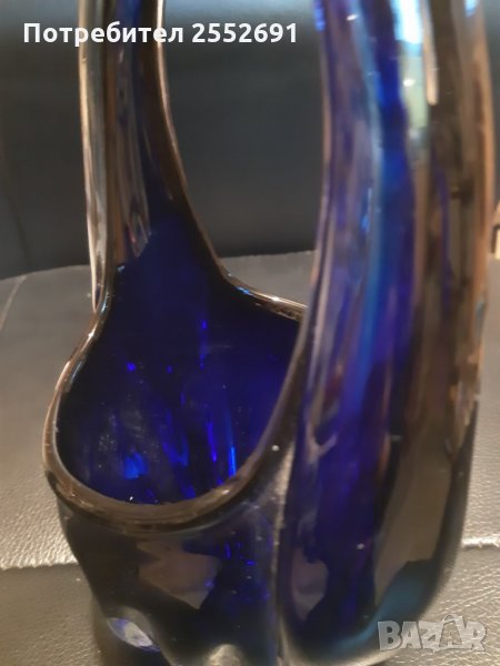 Красив, ръчно изработен чрез комбинация между безцветно и цветно/ синьо/ стъкло съд.
