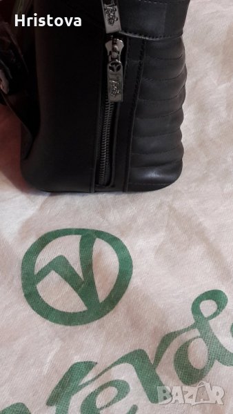 Нова раница на марка Верде. Черен цвят . С два странични ципа. Вътрешни прегради: 1 за телефон и 1 с цип .